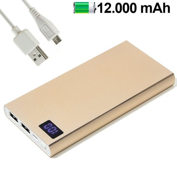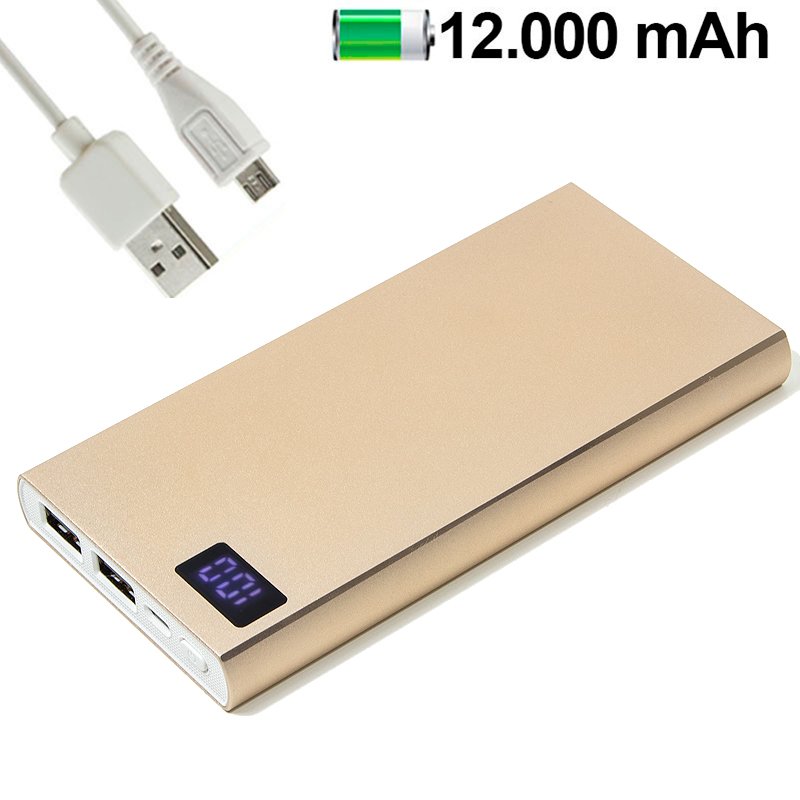 Banco de potência universal de bateria externa Metal de ouro de 12.000 mAh