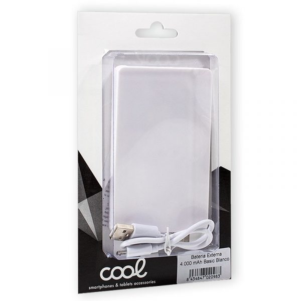 Bateria externa Micro-usb Power Bank 4000 mAh Cor Basic White Cool